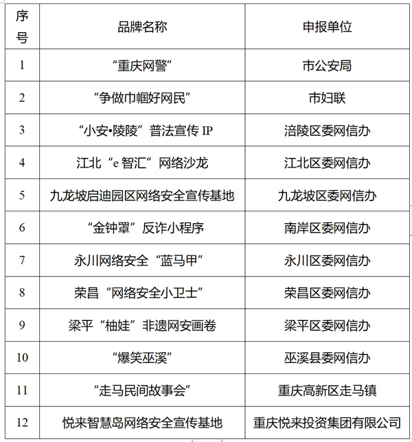 附:重慶市網(wǎng)絡(luò)安全宣傳品牌名單
