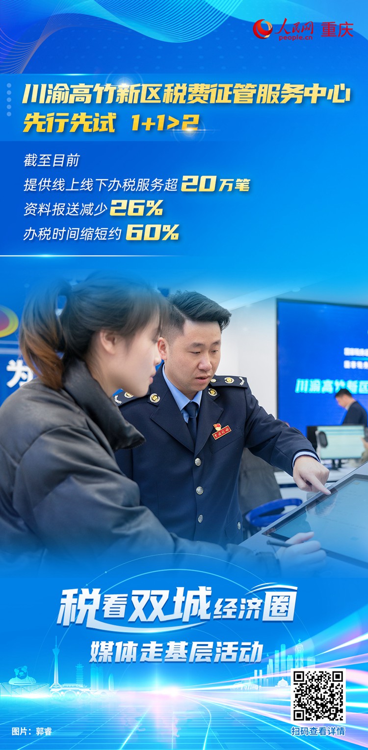 “組織融合是打地基。地基打好了,我們就有更堅固的支撐點去思考創(chuàng)新、謀劃創(chuàng)新、落實創(chuàng)新?!睋?jù)川渝高竹新區(qū)稅費征管服務(wù)中心副主任周翔介紹,近幾年川渝兩地稅務(wù)部門在川渝高竹新區(qū)稅費征管服務(wù)一體化建設(shè)中實現(xiàn)了很多改革首創(chuàng)。如線上建成川渝高竹新區(qū)電子稅務(wù)局,率先在全國實現(xiàn)跨省稅務(wù)數(shù)據(jù)共聯(lián)共享;設(shè)立首條跨?。ㄊ校┘壖{稅服務(wù)咨詢專線電話。線下設(shè)立全國首個跨省域社保費服務(wù)專窗和“川渝通辦”窗口;聯(lián)合兩地司法部門成立稅費爭議調(diào)解室,推動跨區(qū)域、跨部門稅費爭議事項“一站式”解決等。