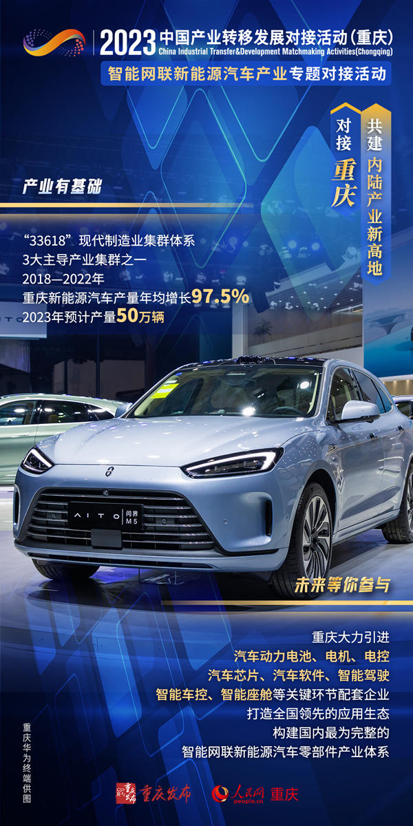 當天下午,6場專題對接活動也將陸續(xù)開展,受邀來渝的800余家客商將分行業(yè)參加智能網(wǎng)聯(lián)新能源汽車產(chǎn)業(yè)、新一代電子信息制造業(yè)、先進材料、智能裝備及智能制造、食品及農(nóng)產(chǎn)品加工、生物醫(yī)藥及醫(yī)療裝備對接活動。
