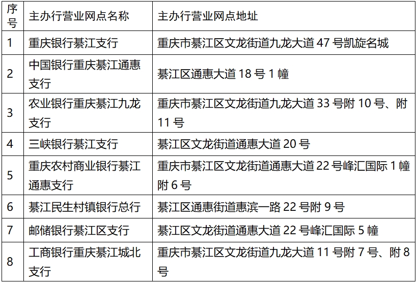 綦江區(qū)可辦稅銀行網(wǎng)點名單