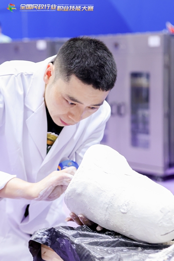“這次比賽的考題可以說是我們?nèi)粘9ぷ髦凶畛R姟⒆罨A的工作之一,但并不意味著簡單?!睆垈フf,難點不在于技術難度有多刁鉆,而是需要基于自己的認識判斷、臨床經(jīng)驗和熟練度。比如要充分結(jié)合假肢模特的情況,在限定時間內(nèi)完成的同時注重各種細節(jié),注重操作順序和規(guī)范,又快又好地完成一個石膏陰型大腿接受腔,并保證適配性,才能較好地完成比賽。最終,還要通過患者感受、裁判檢查和自述答辯來評判效果。