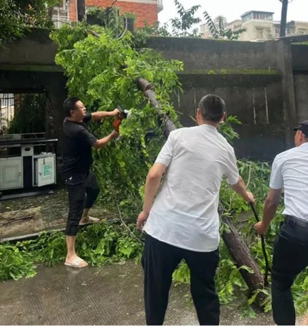 暴雨后大樹被刮倒,渝北區(qū)佳華世紀(jì)新城凱美物業(yè)進行排危。凱美物業(yè)供圖
