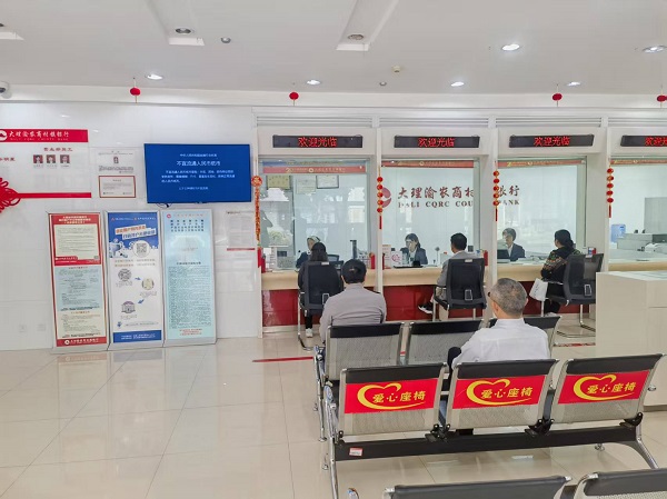 圖為大理渝農(nóng)商村鎮(zhèn)銀行營業(yè)網(wǎng)點一角。大理渝農(nóng)商村鎮(zhèn)銀行供圖
