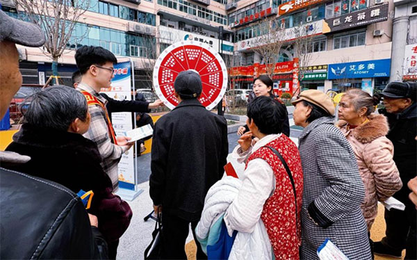 中國銀行重慶綦江支行設(shè)置“轉(zhuǎn)轉(zhuǎn)盤答題”趣味互動游戲,熱情、耐心地為過往群眾細(xì)致講解金融知識和權(quán)益保護(hù)要點,引導(dǎo)群眾參與游戲回答相關(guān)反詐問題,讓群眾在輕松愉快的氛圍里學(xué)習(xí)金融知識,提升自我保護(hù)意識。