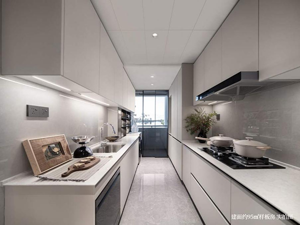 以生活空間為中心,約95㎡戶型打造約35㎡闊綽寬廳,開間約4.2米,廚房空間約12㎡,連接約6平超大靈動(dòng)家政區(qū),以獨(dú)立的晾曬空間釋放景觀陽臺(tái)空間,讓四代宅露臺(tái)生活充分發(fā)揮。