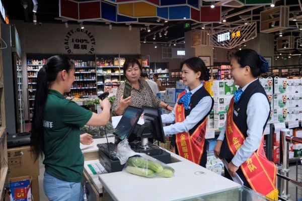 江津支行張富清服務(wù)隊(duì)走進(jìn)雙福農(nóng)貿(mào)市場(chǎng)開(kāi)展金融服務(wù)活動(dòng)。建行重慶市分行供圖