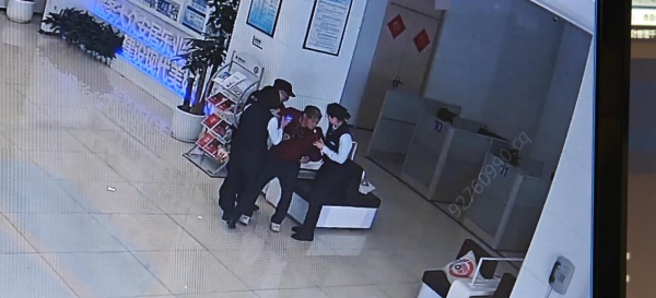 長(zhǎng)壽支行“張富清金融服務(wù)隊(duì)”全力救助患病老年客戶,最終化險(xiǎn)為夷(監(jiān)控視頻)。建行重慶市分行供圖