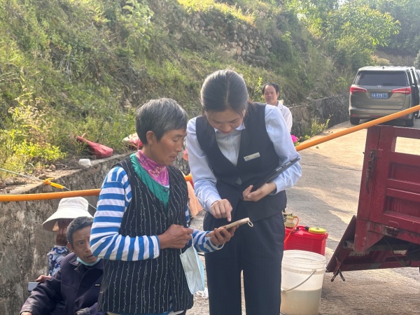 巫山支行“張富清金融服務(wù)隊(duì)”登上海拔1000余米的茶山,為茶農(nóng)上門辦卡。建行重慶市分行供圖
