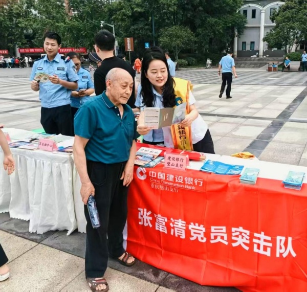 璧山支行張富清黨員突擊隊(duì)走進(jìn)社區(qū)開(kāi)展金融知識(shí)宣講。建行重慶市分行供圖