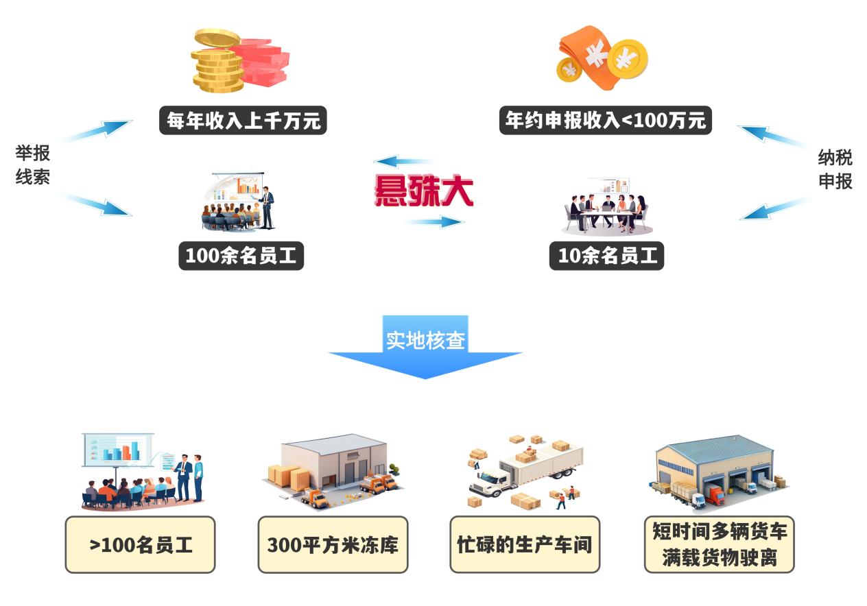 收到舉報(bào)線索后,檢查人員第一時(shí)間調(diào)取了該公司申報(bào)數(shù)據(jù),發(fā)現(xiàn)該公司申報(bào)的在職員工人數(shù)僅10余人、年銷售收入不足百萬(wàn)元,這與舉報(bào)信提及的經(jīng)營(yíng)規(guī)模相差懸殊。究竟是舉報(bào)不實(shí),還是公司另有隱情?檢查人員決定對(duì)該公司進(jìn)行實(shí)地核查。