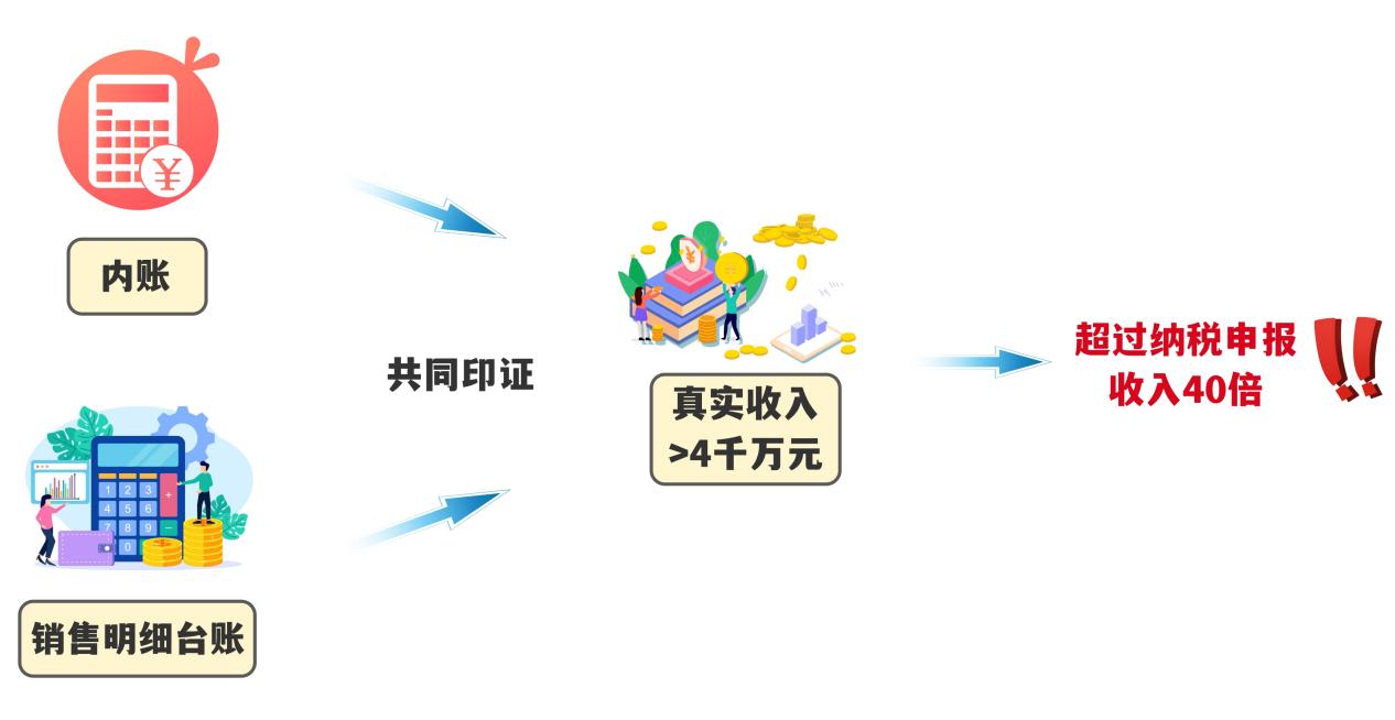 為弄清事實(shí)真相,檢查人員依法檢查公司財(cái)務(wù)人員電腦,發(fā)現(xiàn)有內(nèi)外兩套電子賬簿:外賬記錄的收入與申報(bào)數(shù)據(jù)相同,而內(nèi)賬記錄的經(jīng)營(yíng)情況與舉報(bào)線索提及的規(guī)模特征基本一致。同時(shí),倉(cāng)庫(kù)管理人員電腦里的銷售明細(xì)臺(tái)賬詳細(xì)記錄了超4千萬(wàn)元的貨品銷售數(shù)據(jù),超過(guò)納稅申報(bào)收入的40倍,與內(nèi)賬高度吻合。