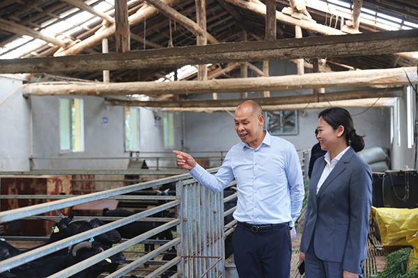 銀行工作人員走訪企業(yè)種羊養(yǎng)殖基地。向詩佳攝