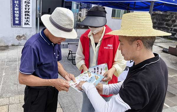 人保財險永川支公司依托何埂鎮(zhèn)車駕管服務(wù)站,面向鄉(xiāng)村群眾開展保險金融教育宣傳。工作人員為老年人量身準(zhǔn)備了大字版的風(fēng)險提示單、反詐宣傳手冊等材料,方便老年人清晰閱讀、準(zhǔn)確理解,讓金融安全意識深入鄉(xiāng)村、惠及老人。