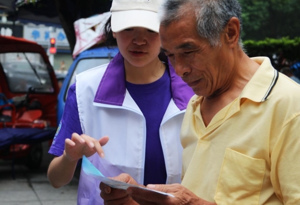 實(shí)踐團(tuán)成員向居民宣傳豐都瓢畫故事。李春柳攝