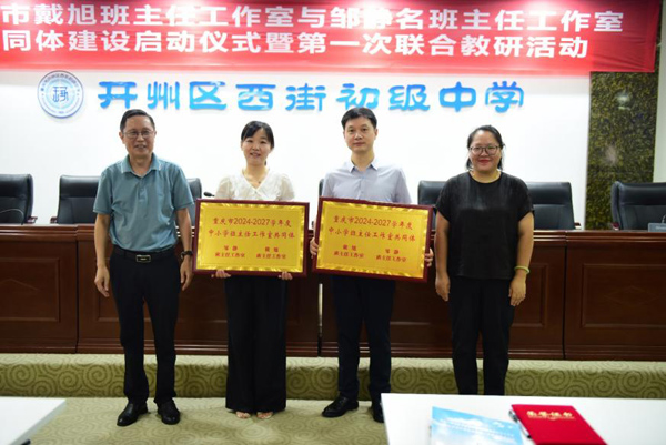 為深化重慶市市級(jí)班主任工作室間的協(xié)同聯(lián)動(dòng),搭建集學(xué)習(xí)、研討、成長(zhǎng)于一體的班主任專業(yè)發(fā)展平臺(tái),8月21日,重慶市戴旭班主任工作室與鄒靜名班主任工作室在重慶市開(kāi)州區(qū)西街初級(jí)中學(xué)資源中心舉行了“班主任工作室共同體”建設(shè)啟動(dòng)儀式暨首次聯(lián)合教研活動(dòng)。