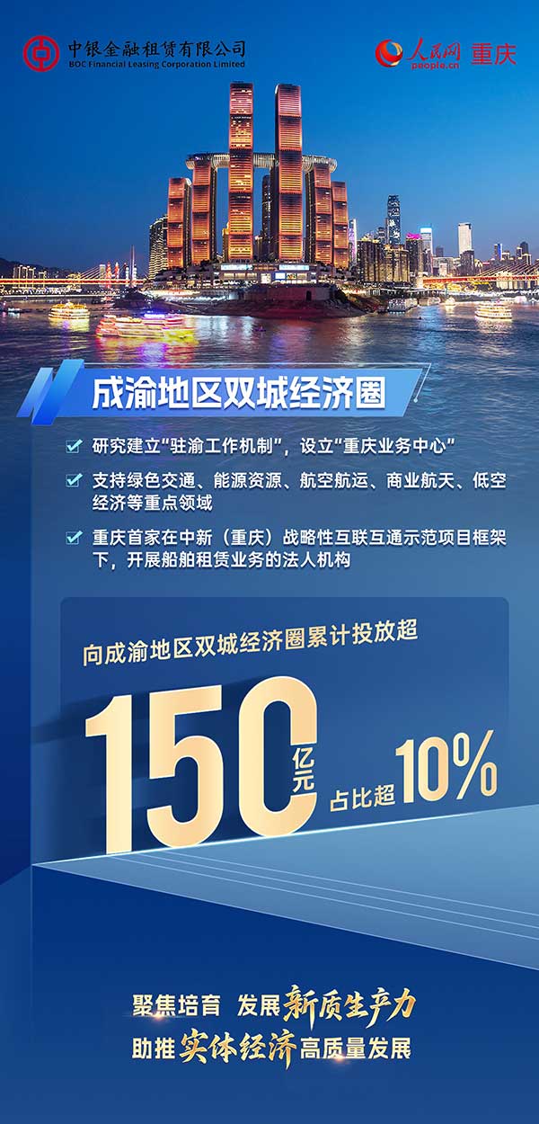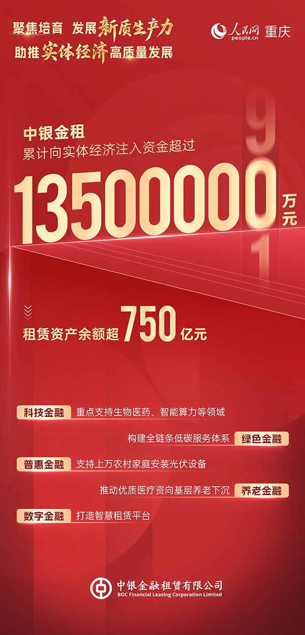 一直以來(lái),中銀金租堅(jiān)持聚焦租賃主業(yè),落實(shí)監(jiān)管導(dǎo)向和工作要求,依托中國(guó)銀行全球化優(yōu)勢(shì)和綜合化特色,用好注冊(cè)地重慶政策優(yōu)勢(shì),服務(wù)經(jīng)濟(jì)社會(huì)發(fā)展大局。歷經(jīng)五載耕耘,中銀金租累計(jì)向?qū)嶓w經(jīng)濟(jì)注入資金超過(guò)1350億元,助力境內(nèi)外優(yōu)質(zhì)資源雙向奔赴,業(yè)務(wù)覆蓋科技創(chuàng)新、綠色能源、高端制造、航空航運(yùn)等領(lǐng)域,為培育創(chuàng)新動(dòng)能作出積極貢獻(xiàn)。
