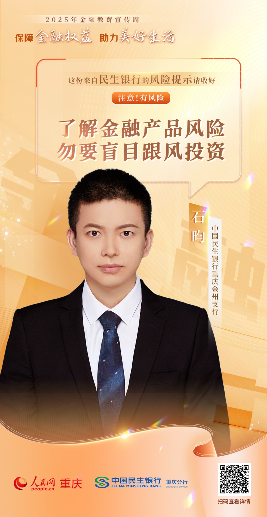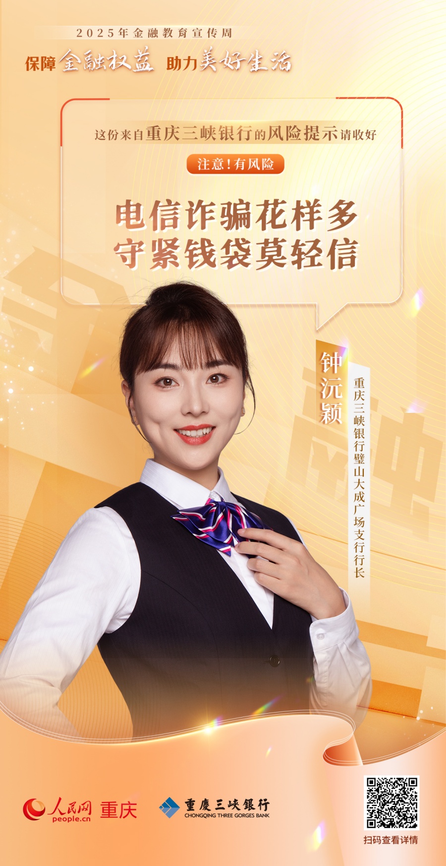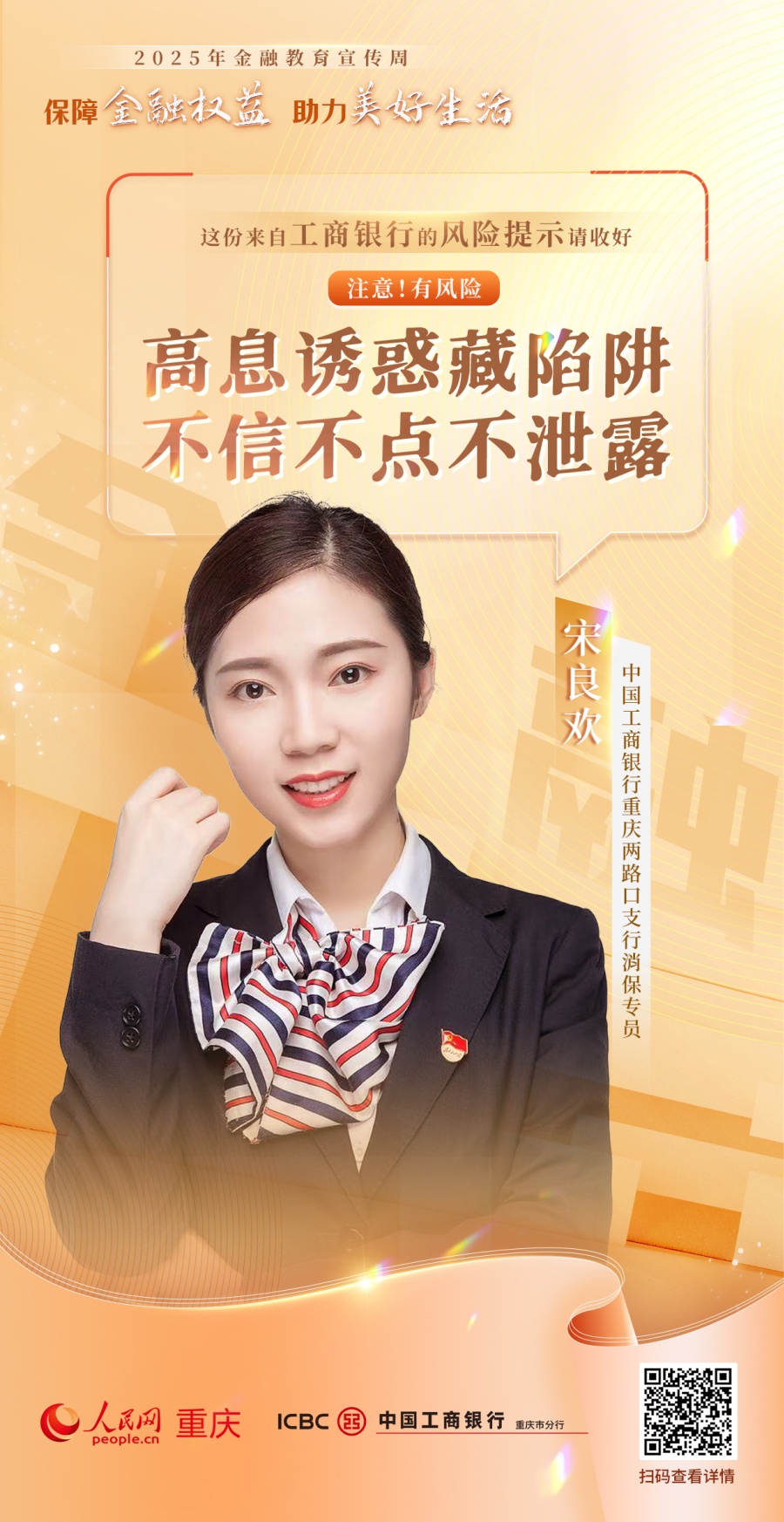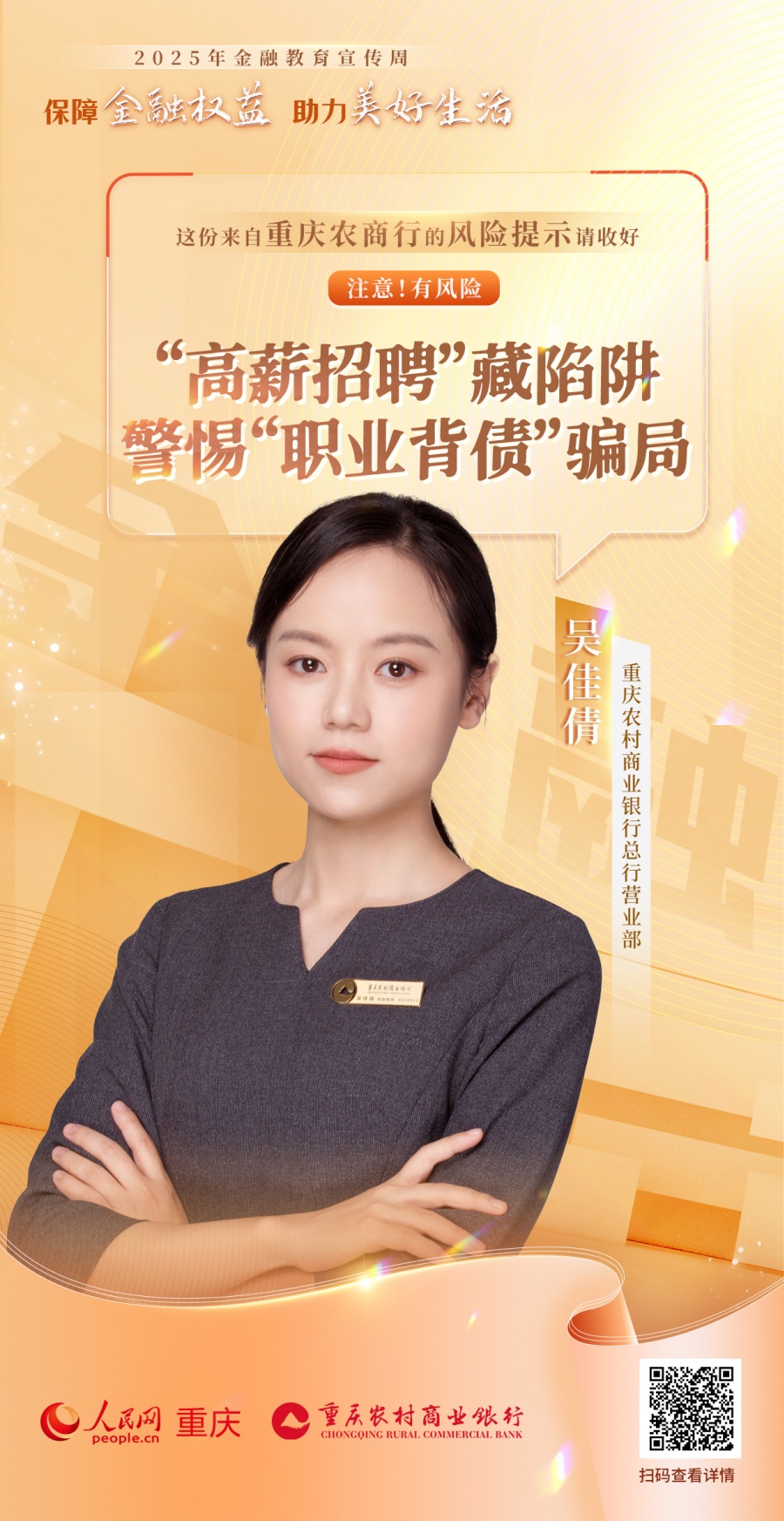 人民網(wǎng)重慶頻道聯(lián)動重慶25家金融機(jī)構(gòu),推出“注意!有風(fēng)險(xiǎn)”系列公益海報(bào),面向廣大金融消費(fèi)者普及金融知識,提示金融風(fēng)險(xiǎn),倡導(dǎo)理性消費(fèi),助力市民守護(hù)財(cái)產(chǎn)安全、樹立正確金融消費(fèi)觀念。(游晉宇、鄒雨璠)