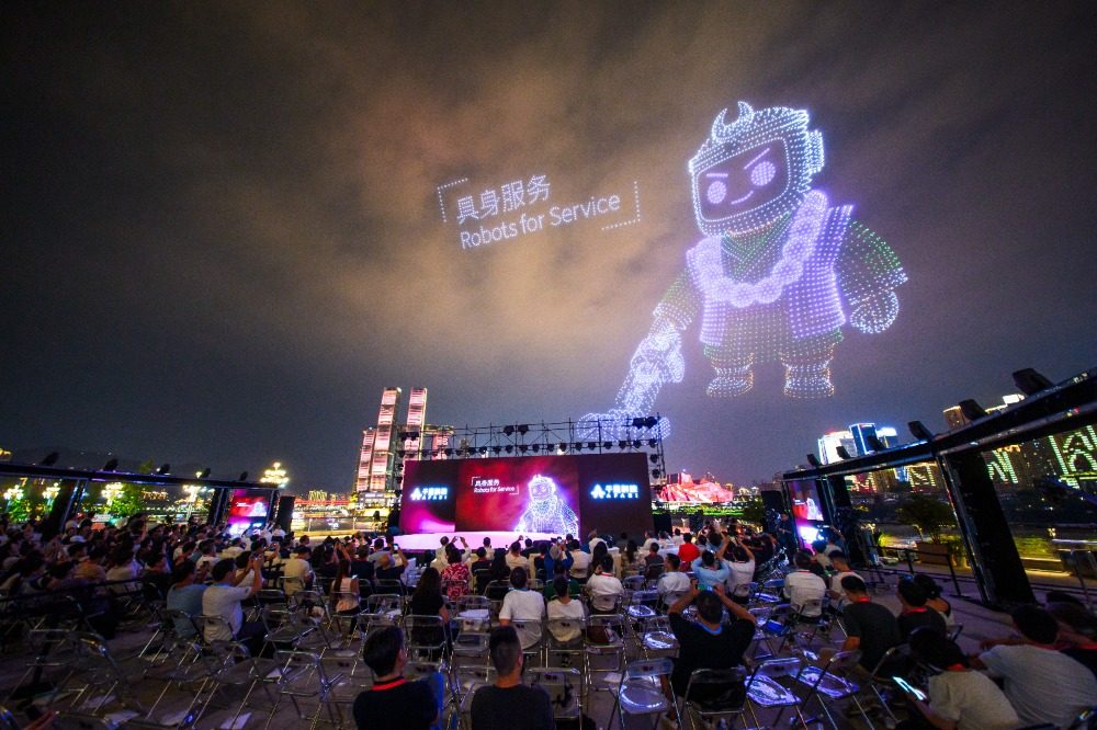 此外,燈光秀還展示了手持吸塵器打掃衛(wèi)生的機械沙僧,雙手合十、念念有詞的機器唐僧等形象也一一亮相,生動形象地展現(xiàn)出AI既能夠為人們?nèi)粘F鹁犹峁┍憬莘?wù),又能夠賦能團(tuán)隊完成一個個挑戰(zhàn)的強大算力。