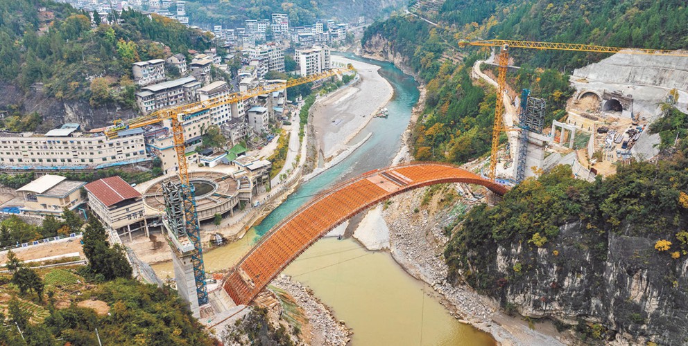 近日,巫溪大寧河拱橋拱架順利合龍(無人機照片攝于12月2日)。
