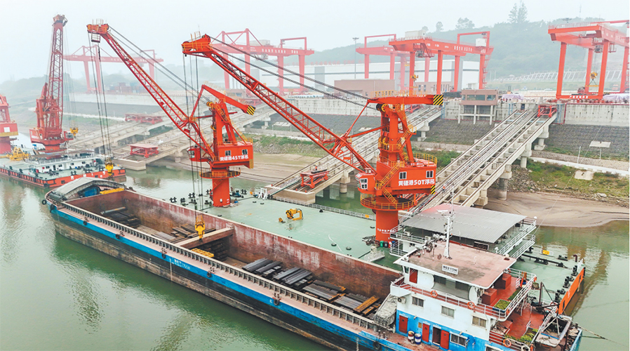 作為我市國(guó)家物流樞紐補(bǔ)鏈強(qiáng)鏈重點(diǎn)項(xiàng)目,黃磏港自今年3月開(kāi)港至11月底,已完成吞吐量37萬(wàn)噸、集裝箱1562標(biāo)箱。目前,港區(qū)正深挖腹地園區(qū)貨源,為鋁基新材料、高端裝備制造、汽摩零部件等重點(diǎn)企業(yè)制定“一企一策”物流方案,全力沖刺投運(yùn)10個(gè)月內(nèi)達(dá)成50萬(wàn)噸吞吐量的目標(biāo)。(記者 張錦輝 攝/視覺(jué)重慶)